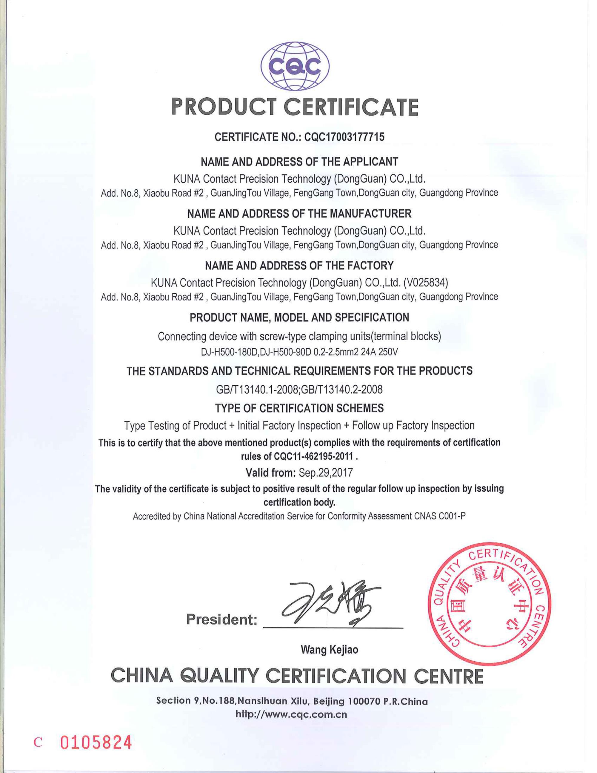 CQC認(rèn)證證書