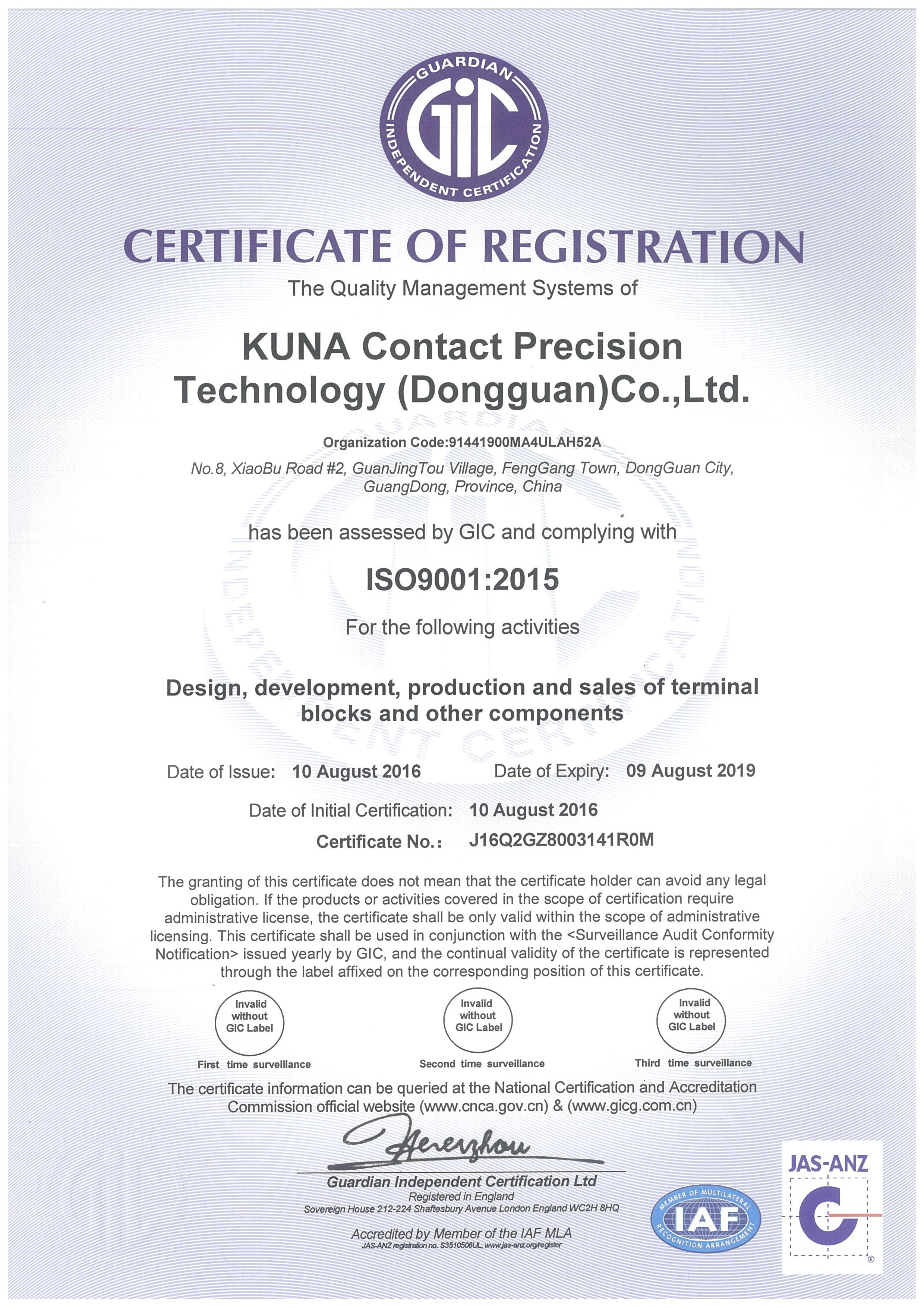 ? ??? 這一喜訊證明科藍(lán)康大精密塑膠(東莞)有限公司(www.kunacon.com)已經(jīng)建立符合ISO9001:2015, GB/T??19001-2015的認(rèn)證標(biāo)準(zhǔn)的質(zhì)量管理體系。經(jīng)過嚴(yán)格審核的國際標(biāo)準(zhǔn)化的質(zhì)量管理體系認(rèn)證,使企業(yè)真正達(dá)到法治化、科學(xué)化的要求,極大地提高工作效率和產(chǎn)品合格率,迅速提高企業(yè)的經(jīng)濟(jì)效益和社會效益,從而加強(qiáng)了客戶對科藍(lán)康大公司信任,對于擴(kuò)大市場開拓起到重要的作用。?